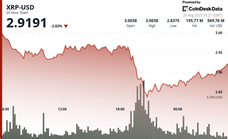 Bitcoin (BTC) fell to $114,290, nearly testing the bullish trendline drawn off April and June lows, but has since recovered to trade near $115,900, according to CoinDesk data. Ether (ETH), the second-largest token by market value, mimicked BTC's price action, erased the early drop to $3,616 to trade near $3,690.